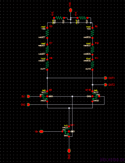 大家好,请教一个关于差分对版图的问题,我画的是电阻负载的差分对,输入对管采用共质心画法,指数为10,ABBAABBAAB对应BAABBAABBA,栅极交叉连接,其中一部分栅接在一起作为输入IN1,剩下的部分接一起作为输入IN2,现在LVS的Nets总提示节点个数不匹配,说是原理图中1个节点,版图中却有2个。是不是因为共质心的画法,需要把MOS管的多晶栅拆成交叉两个造成软件识别不了?初学版图,谢谢指教。