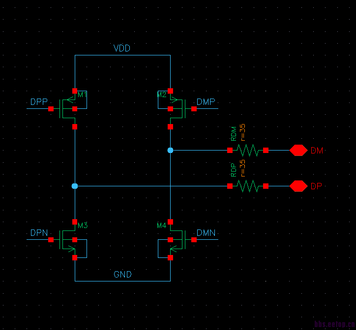 小的最近在做usb1.1 模拟driver,用做USB device用,下图是我的driver电路结构,在外界负载的情况下,full-speed外接50pF的电容,low-speed外接50pF~150pF的电容负载以及15K的下拉电阻,通过调节上下管子尺寸,可以使电路在tt_27℃_3V/3.3V/3.6V三种电压下, 把rise time/fall time以及cross voltage调节到USB 1.1 spec的范围之内,但是换到另外一个corner,比如ss_-40℃_3V/3.3V/3.6V就无法满足spec的要求,而且超出的范围还比较大。如果按照这样的调试方法,真的做不到一个尺寸让所有的case都满足spec的要求,不知道有哪位大侠可以指教一下我的问题到底出在哪里?小的我感激涕零啊