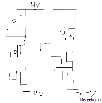 再用一级反向器似乎可行。前级已经降到vth附近了。再来一级应该在亚阈值附近了。