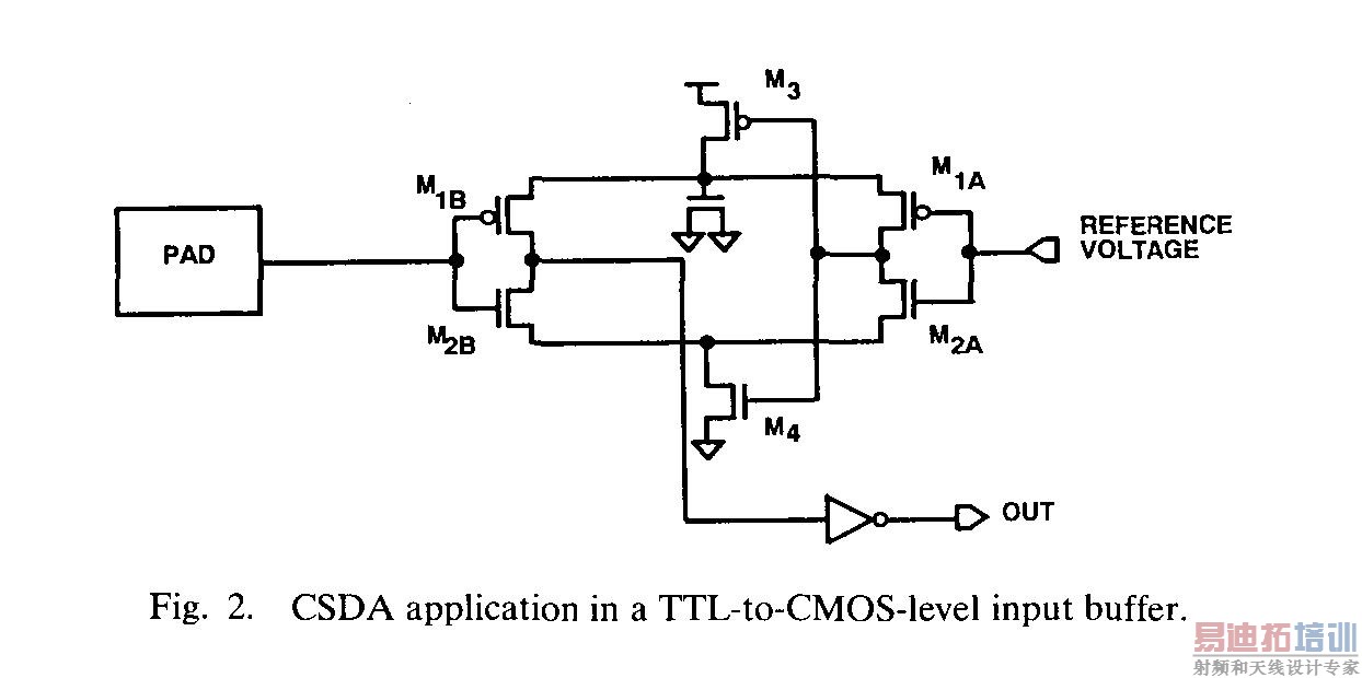 to the sources of device pairs M1A-B, and M2A-B enhanced the switching speed of the CSDA in this particular application. This speed enhancement is the result of the additional charge supplied by the capacitors during switching transients. ."