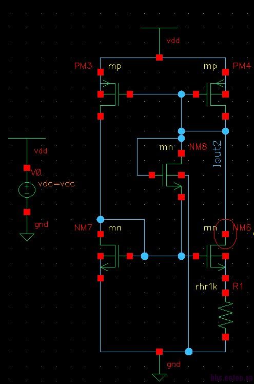 这是根据书上 加了一个启动元件。电路工作后 这个管子就截止了。一种可能如2#所说的启动电路漏电;另一种可能是电路当中的mos器件收沟道调制效应明显。