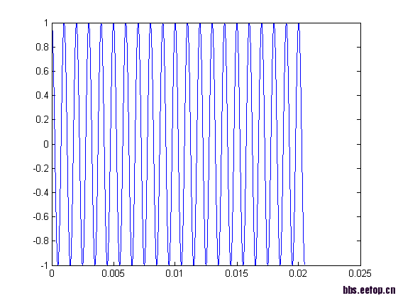 y=cos(2*pi*1000/3200000*(1:65536)); %采样率3.2M,信号频率1K