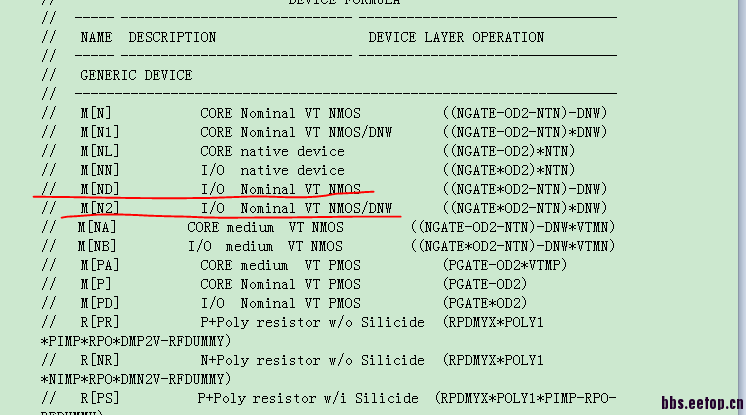 在calibre中layout中识别的是N2模型,而原理图中是ND模型,我觉得原因在这里,想知道该怎么修改rule文件来通过LVS,谢谢各位!