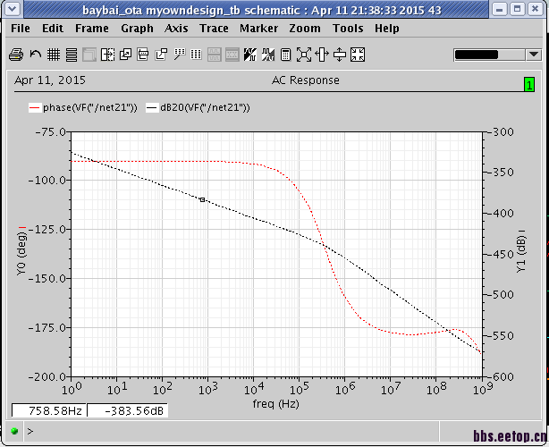 小弟刚放了一下二级的运放,各个管子都已处于饱和状态,但是交流增益怎么是这个样子啊?问题出在哪了?应该怎么解决啊?求助~感谢~