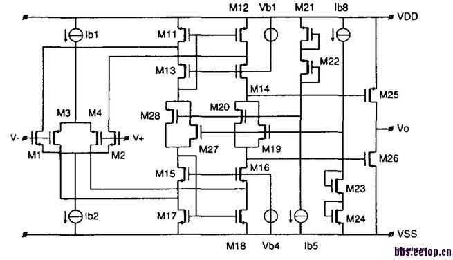 2. 后面AB类管子尺寸如果尺寸很大,很难将output range的低值压到GND,甚至几十mv都很难。