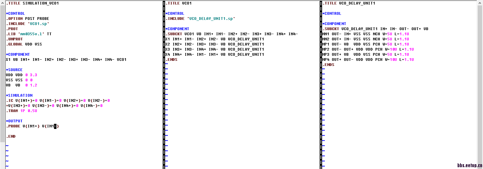 小弟新手,在用HSPICE仿真环振时不震荡。设置了.IC还是没有用,而且用的延迟单元在cadence中仿真没问题。请教大家原因,编写的网表可以看图片。[attach]633743[/attach]
