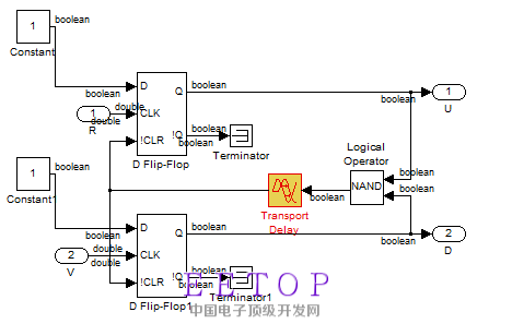 参考建立了PFD的模型,但是仿真时报错, transport delay 需要double数据类型,但是和它相连的nand又不知道怎么设定double