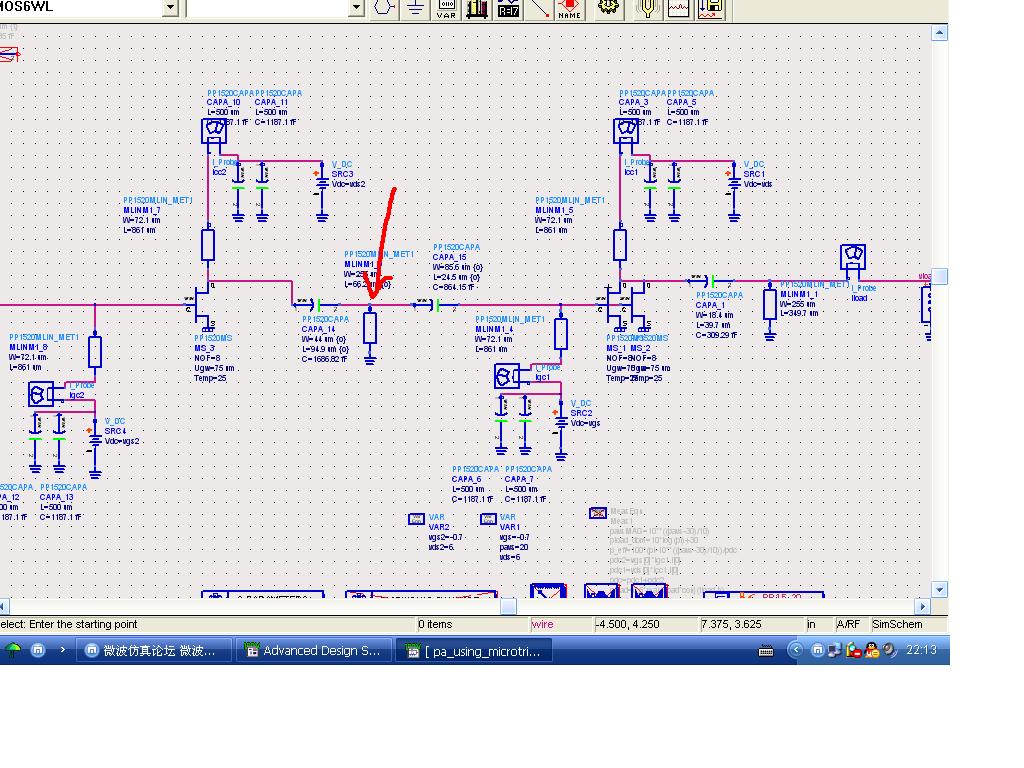 我用到的电感使用图上微带线接地做成的,微带线等元件全部调用了工艺库元件,我也觉得仿真结果有点过于理想,这两天正在学习monmentum,思路是不是将电路中的微带线全部用monmentum构建为版图器件,再带入电路中进行协仿真呢。