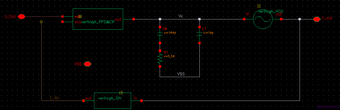 当我将VCO控制电压的初始值设置为0v时,输出抖动剧烈,图一;当我设置为从0.5v开始时,输出完全正常,图二。两个仿真都是verilogA模型,其他条件完全一样。