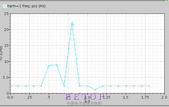 我的LC-VCO大概是这样,做电压调谐仿真时,总是会出现这样的曲线。这时如果把电感调很大,电容调很小,才会变成斜线.