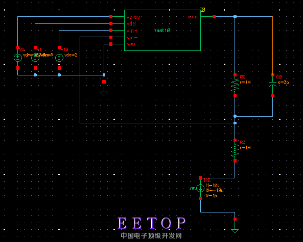 1、在使用cadence仿真时直流偏置怎么设置?不加反馈稳定运放负输入端的话,会导致差分输入不为0.