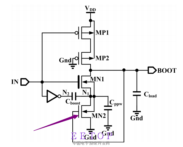 大家好,图中电路是电荷泵电路,我现在疑惑,图中NMOS管MN2的漏端与bulk端短接的用途是什么。希望大家指点指点。