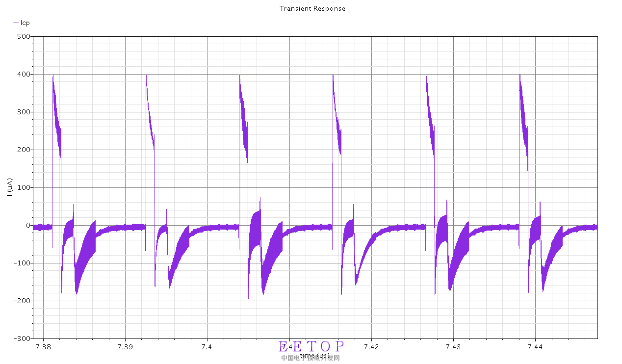 图1,分别为控制电压,电荷泵电流,up管电流电压,down管电流电压。