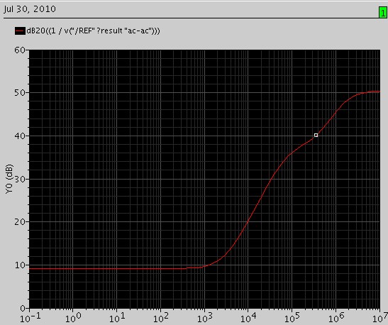 个人感觉电路的静态工作点没有调好,LZ说到,DC是Vout随VDD变化?输出电压变得很厉害,到底变得有多厉害,一般来说仿真的时候,变化几乎看不到的,或者变化很小。还是先搞好DC仿真,再去看AC吧。