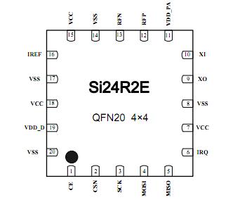 Si24R2E也可以在外部MCU控制下工作,芯片不需要额外接口,外部微控制器(MCU)通过SPI接口对芯片少数几个寄存器配置即可以实现数据的发射,芯片完全兼容Si24R1发射功能,在不打开自动发射功能时,芯片功能与配置方法与