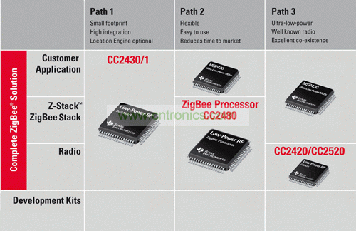 ZigBee 近日核准了 ZigBee-2007 规格,此规格定义了 ZigBee 与 ZigBee PRO 这两套功能集。在ZigBee-2006的基础之上,新的 2007 规格功能进一步强化,而且与某些网络情境兼容。简而言之,ZigBee 功能集提供树状寻址、AODV (特定随选距离向量) 网格路由、单播、广播与群组通讯、安全性等其他功能。ZigBee PRO 以随机寻址取代树状寻址,包含 ZigBee (2006 与 2007) 所使用的 AODV,但是提供多对一来源路由为替代方案。另外,ZigBee PRO 新增有限的广播寻址,并可支持「高」层级安全性。ZigBee 与 ZigBee PRO 功能集皆可支持选用的灵活性跳频与片段化 (图 1)。