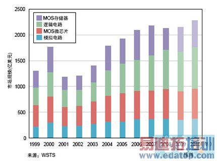 但是,不管信号的数字化步伐如何向前迈进,模拟IC决不会在半导体市场上消失(见图1)。这主要有两个原因:其一,不论数字信号处理的对象范围怎么扩大,如果没有模拟技术,就无法实现人和自然的接口;其二,如果芯片中只有数字电路,而没有通过模拟电路产生的时钟信号以及供电的电源,那么,半导体芯片便无法工作。同时,随着工艺的进步,电源电压日益下降,受噪声的影响,芯片常常会出现不能正常工作的情况。要解决这个问题,非模拟技术不可。