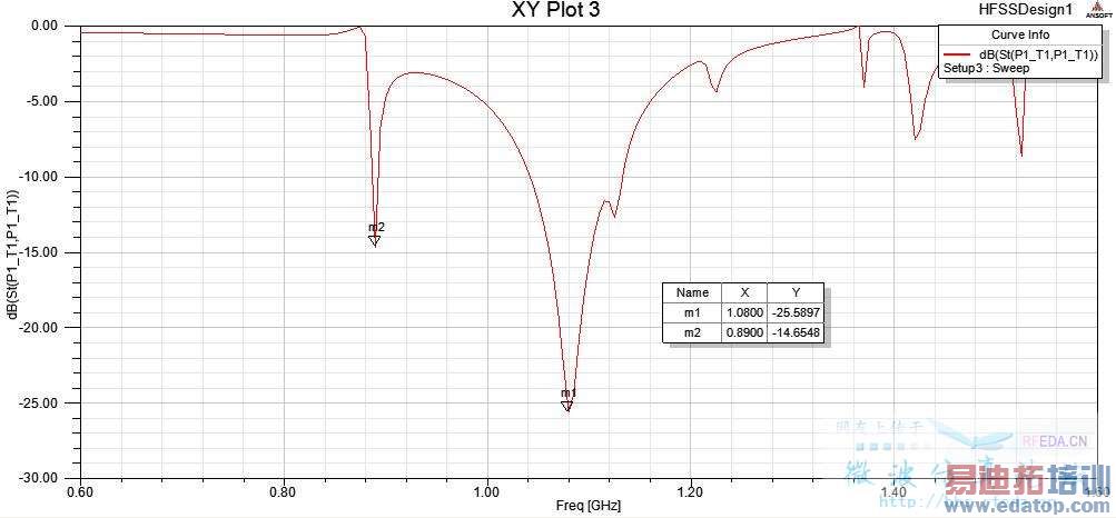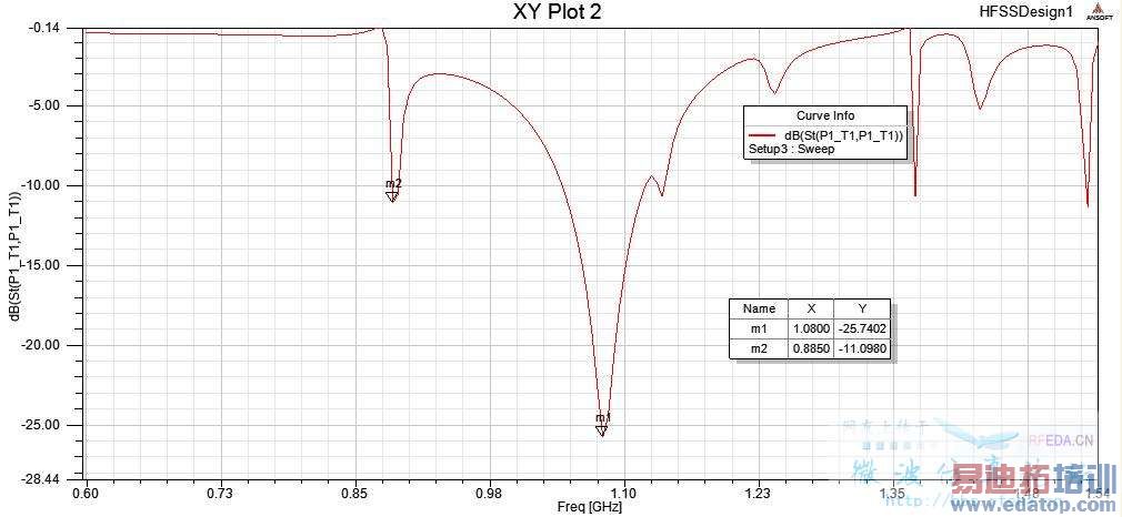 1. 在该实例中S11代表的应该是端口1的反射系数,即端口1的回波损耗,理论上S11应该是越小越好,越小表示反射越小。(我的理解)