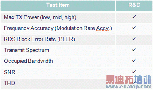 图2 这11项测试已成为FM芯片、模块、参考设计和设备设计阶段的主要测试项