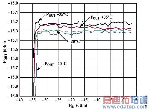 图7 当ADI公司的双RMS检测器(AD8364)的两个输入端均设置为控制器模式时,控制其增益受温度和输入功率的影响程度优于±0.15dB,
