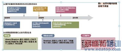 与过去在全行业范围内开展的活动不同,毫米波通信领域内的最新发展动向是由英特尔、Broadcom及Atheros等业界领先的厂商所推动的。与常用的 2.4GHz无线通信相比,毫米波通信的频段相对较高且具有高度直进性,因此被认为是难于加以利用的无线技术,在无线通信的标准化进程中也一直被定位为非主流技术。然而,随着所有主要的WLAN芯片厂商对该技术表现出极大的兴趣,毫米波通信的地位正在发生变化,将有可能成为802.11n的后续规格。