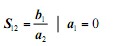 反向的传输参数S12 等于在端口1测得反向功率b1与端口2的激励功率a2的比值: