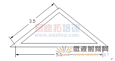 图1为该滤波器的基本谐振单元,选取闭合的三角形作为基本的谐振单元,通过合理的放置谐振单元的位置可以有效的减小滤波器的体积。由于是闭环谐振所以每个谐振单元的总长度约为波导波长的整数倍。