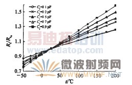 研究结果表明,微波pin二极管的电阻的温度性能微观上受载流子寿命、电子迁移率、表面状态等诸多因素的影响,其综合结果表现为二极管电容值对二极管的电阻的影响最大,微波pin二极管的钝化方式和几何结构对其电阻的温度性能影响不大。结电容为0.1~1.0 pF的微波二极管即使钝化方式不同,其电阻都具有正的温度系数,温度的升高导致二极管电阻的增加,约为线性关系。结电容越小,则m值越接近于2,电阻随温度的变化越小;反之,变化越大。