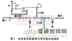 图3所示,电路图是两级限幅器,通过级数的增加可以提高限幅器的隔离度。第一级限幅器由耦合检波器和限幅器共同构成,当脉冲或连续波信号通过时,耦合检波器产生一个正的检波电压加到第一级限幅器的限幅二极管的正端,降低限幅二极管R,(二极管正向电阻)
