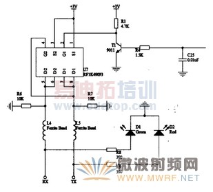 为了使功放电路可以工作在TDD模式下,在R F 收发器端和天线端各加一个射频单刀双掷(SPDT)开关。直接采用SkyWorks 公司的GaAs 集成SPDT开关芯片AS179-92。该芯片插入损耗为0.4db,上升下降时间为10ns。