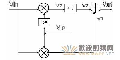 其中,Vlo是本振信号,Vin是射频输入信号,Vout是去除了镜像干扰信号的低频有用信号。+90表示移相90度。数学推导如下:(射频输入信号为用单频信号w0+w1,对应的镜像信号频率为w0-w1)