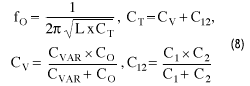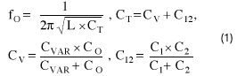 一个灵活、廉价、并具有足够高性能的VCO可基于一个由廉价的表贴电感和变容二极管组成的电感-电容(LC)谐振槽路组成。振荡器槽路是一个并联谐振电路,控制着振荡频率,电感或电容的任何变化都会改变振荡频率。电感和压变电容可以并联或串联模式的网络形式实现可变谐振。