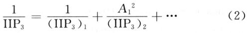三阶截点IP3定义为三阶互调功率达到和基波功率相等的点,此点所对应的输入功率表示为IIP3,此点所对应的输出功率表示为OIP3。根据三阶互调截点的级联式: