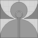 为了实现陷波功能,在圆形辐射贴片上开了一个月牙形槽,如图3,即在天线结构中引入半波长的谐振结构,当调整月牙形槽的总长约为所需抑制频率对应的半波长时,在该频率点及其附近输入阻抗异常,阻抗失配.陷波中心频率与月牙形槽的关系为