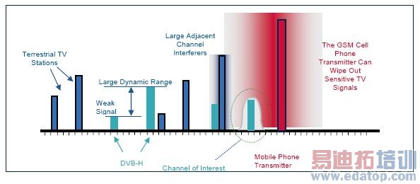 图2. 包括手机功率放大器在内的各种干扰都会影响移动电视性能。