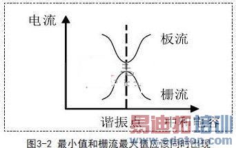 调整时利用放大器本身的栅流表作为指示器,不加板压,开启灯丝,加适当的激励电压。观察栅流表,调谐板极回路,若电路中中和不完善,则栅流表的变化如图3-1.