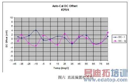 TI 的盲校算法可以在全温范围内把直流偏置校准到低于+/-5mV 以内,图六是基于 TRF3711 的实测试结果。