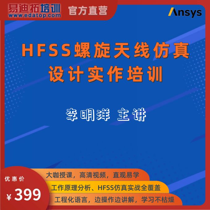 课程名称:HFSS螺旋天线/弹簧天线仿真设计实作培训