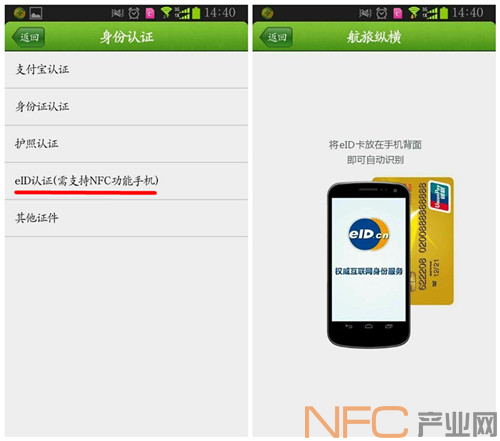 完成eID的开通之后,接下来我们实际体验一下使用eID进行实名认证的应用航旅纵横。据NFC产业网了解,目前已经接入eID的有360手机助手、信达证券、百合网、法大大等多个领域的线上应用,后续我们会带来更多的实测体验。