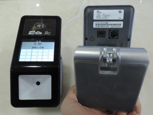 底座上部有串口以及USB接口,除此有线通讯方式,它还搭载了WIFI以及BT无线通讯功能,根据百富发布的相关参数,目前已经着手增加SAM卡槽,能够实现脱机交易,未来是否会考虑其他通讯方式目前还不得知。整体而言,QR55的设计非常简约,但功能却不简单。
