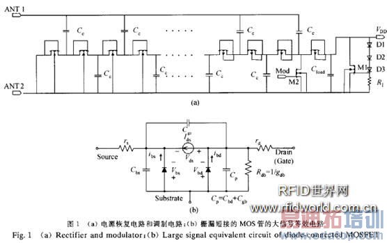无线射频识别(RFID)技术,是利用无线射频方式在读卡器和射频标签之间进行非接触双向数据传输,以达到目标识别和数据交换的目的.工作于125kHz和13.56MHz等低频频段的标签设计技术已趋于成熟,目前国内外的研究热点主要集中在超高频(UHF)频段和微波频段的无源标签设计以及微波频段的片上天线设计等方面,国内尚未见到有关UHF及微波频段完整标签设计和测试的报道.对于无源RFID标签来说,其最重要的参数就是工作距离,而提高工作距离的主要途径在于降低芯片功耗和电源电压.当标签位于读卡器场区的不同位置时,输入功率的变化范围可达几十dB,因此芯片还必须能够处理动态范围很大的信号.这些都是无源标签设计中的关键问题,也是当前研究的热点问题.本文提出了一种与NCITS一256—1999协议兼容的915MHz无源射频只读标签,通过对射频前端电源电路和解调电路在器件、电路结构等方面的优化,降低芯片功耗并扩大芯片工作动态范围.文中给出了完整芯片的仿真和测试结果.& nbsp;