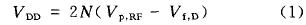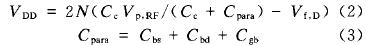 电源恢复电路的结构如图1(a)所示.当标签离读卡器较远时,标签接收到的射频信号很微弱,只有几百毫伏.为了在远距离下获得合理的工作电压,电源恢复电路采用了9级Dickson倍压电路的形式.在不考虑寄生效应的情况下,N& nbsp;级Dickson倍压电路所能获得的电源电压为[1]:& nbsp;