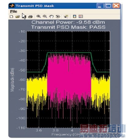 首先是信号接收和分析:传统的频谱分析仪是窄带接收机,无法测量超宽带信号的实时频谱,最多只能使用“最大保持”一类的功能获得MB-OFDM信号的频谱包络。&