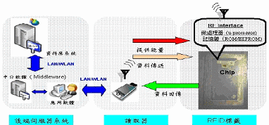 根据林宏泽顾问在去(2008)年主动式RFID安全产业创新应用聯盟说明[参1],RFID的结构如图1所示,数据库集合所有的数据,将所有卷标(Tag)的作为纪录以为往后查询与登录的数据。