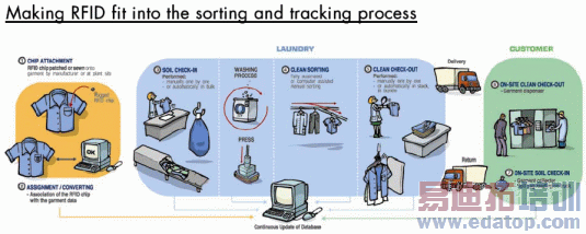 随着RFID标签材质的持续开发,标签的耐用性提升,包括:耐水、耐热、耐压、耐碱性等,让RFID科技更能深入更多服务应用,制服资赁业就是一项创新应用。