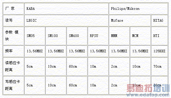 我们经过调查,LEGIC,目前也只有LEGIC提供了感应距离从5cm、10cm、60cm、10m全兼容的安全读写模块。(说明:安全读写模块是读写器与卡片完成信息交换的接口部件)而Philips/Mikron的2cm,10cm 与70cm(读距离为70cm,写距离只有20cm) 的产品规划是两个系列,Mifare和HITAG,频率都不同,更谈不上全线兼容。具体见下表: