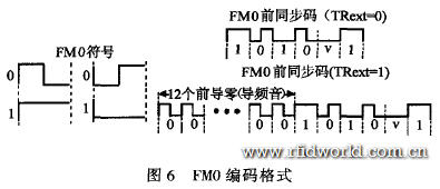 标签反向散射给读写器的数据采用FM0编码,图6给出了FM0编码的格式。