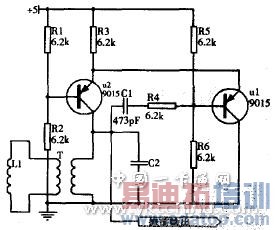 准确无误地检测车辆是系统正常工作的前提。通过各种方案比较,本设计的车辆检测器采用地感线圈检测方案。地感线圈车辆检测器是一种基于电磁感应原理的车辆检测器。地感线圈Ll埋在路面下,通有一定工作电流的环形线圈,由多匝导线绕制而成,埋设在道路中。地感线圈构成的耦合电路如图3所示: