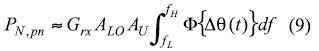 如果RFID系统只是发射UHF连续波信号,那么PN,pn电平将随时延发生很大的变化。在最坏的情况下,即ωΔt采用等式7中的[(2n - 1)π/2值,其中n是正整数,Tx泄漏信号的最大相位噪声可以近似表示为: