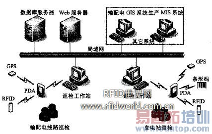 该系统由采集终端(GPS接收器、RFID和条码阅读器)、移动终端(PDA类掌上电脑)、巡检工作站、WEB发布服务器和数据库服务器组成如图4。方便灵活的插件式设计可以和第三方系统如输配电GIS系统和生产MIS系统进行对接,使电力企业的信息平台做到最大化的信息共享和应用。
